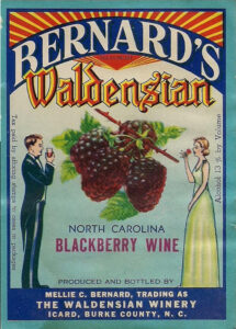While he operated Bernard’s Waldensian Style Wines, Mellie created a label for his bottles that had a man and a woman on each end with a wine glass in hand. Governmental officials saw the label and had a fit. They contended it would be unfit to depict a woman drinking wine, even if they did so in real life. So, they ordered a change. Instead of a wine glass, the woman held a rose. The controversy demonstrates attitudes of the time about drinking and the accepted role for women in American society.