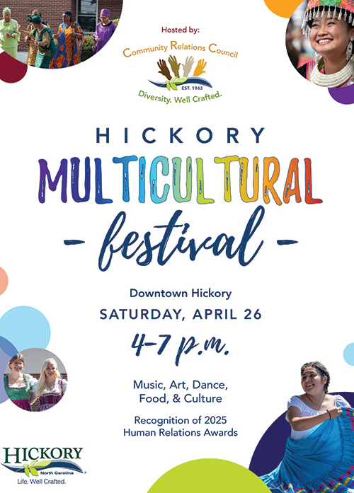 Hickory – The City of Hickory Community Relations Council (CRC) will host the second annual Hickory Multicultural Festival on Saturday, April 26, from 4-7 p.m. in downtown Hickory.