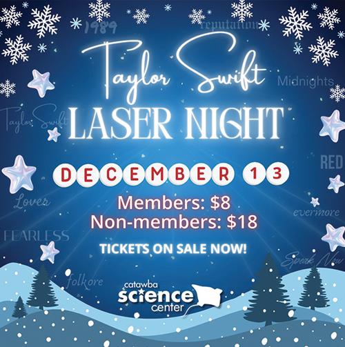 Hickory – Catawba Science Center is going “Back to December” as they celebrate Taylor Swift’s birthday. Join them during this special after hours event on Friday, December 13th, for another showing of the Taylor Swift laser show! Feel free to dress as your favorite Swift Era and bring friendship bracelets to swap. Purchase a ticket to reserve your spot today! https://shorturl.at/kM51c