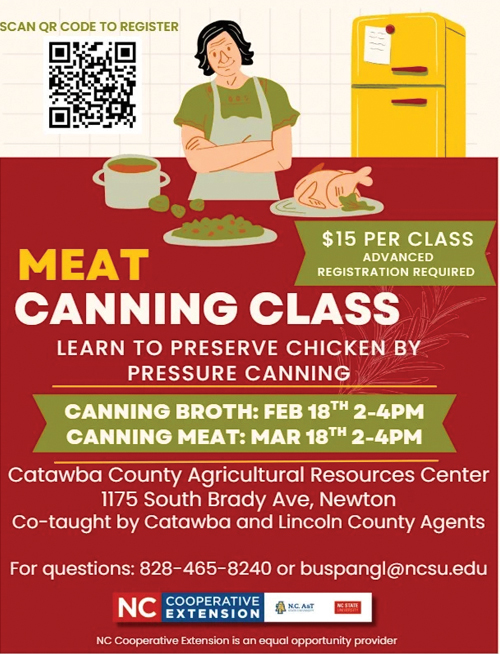 Newton, NC – Learn some food preservation basics and more about canning broth and meat (chicken) with the upcoming Food Preservation series. These canned items would be tasty to use in your wintertime soups.